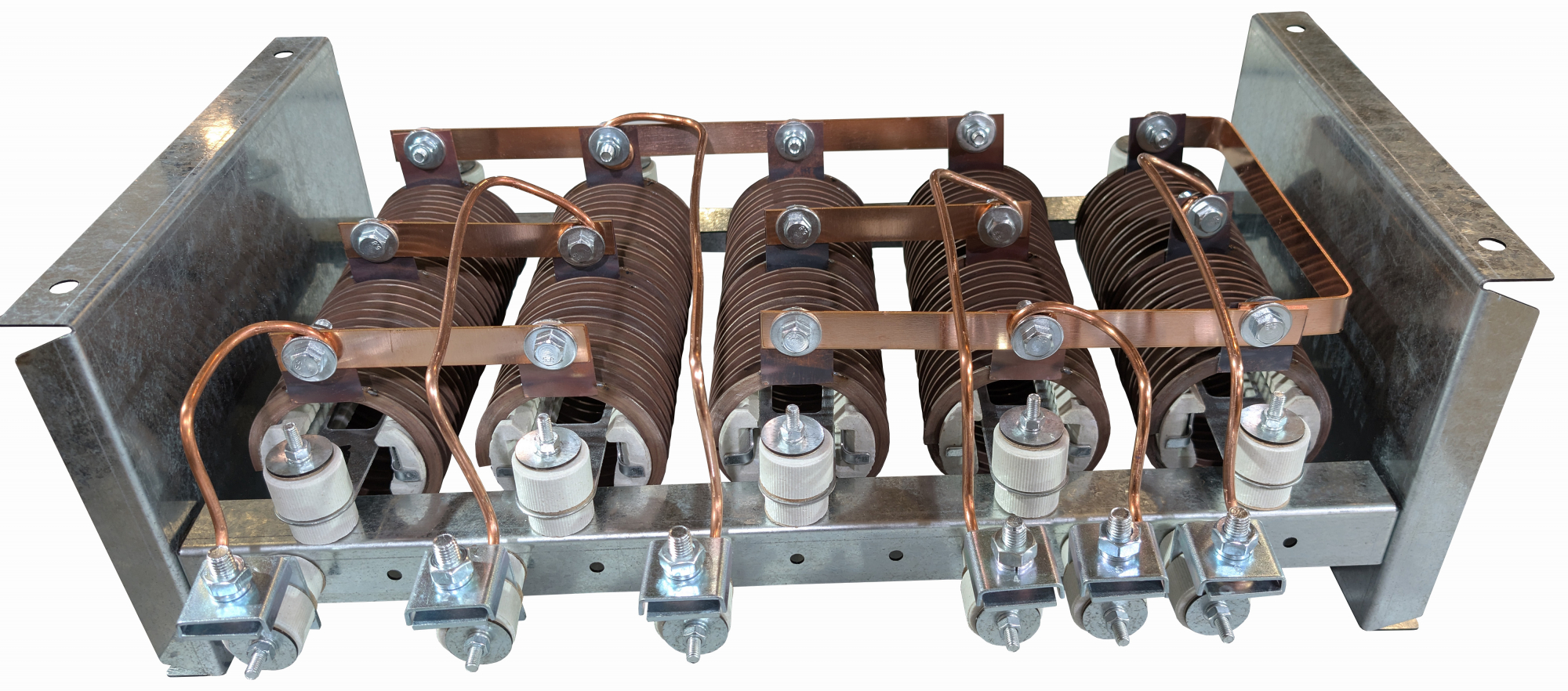Блок резисторов БРФ У2 ИРАК 434.352.013-33 – изделие, состоящее из набора элементов сопротивления, предназначенное для пуска, регулировки скорости вращения вала электродвигателя и его торможения. Сопротивления в блоке соединены между собой согласно обусловленному номеру схемы и имеет определенное схемой количество выводов. Изделия предназначены для работы в электрических цепях постоянного и переменного тока.