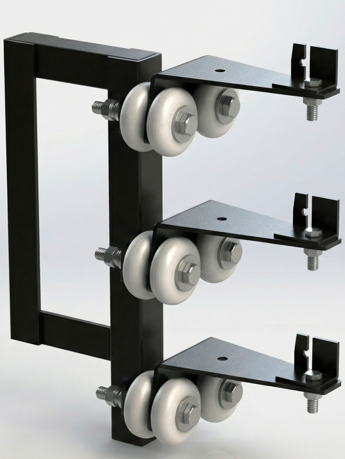 Кронштейн промежуточный К34БУ1 - металлоконструкция предназначенная для закрепления троллеедержателей, к данному кронштейну крепятся два типа троллеедержателя ДТ-2И для уголковых троллей или ДТ-2Д для троллей квадратного профиля по 3 штуки.
