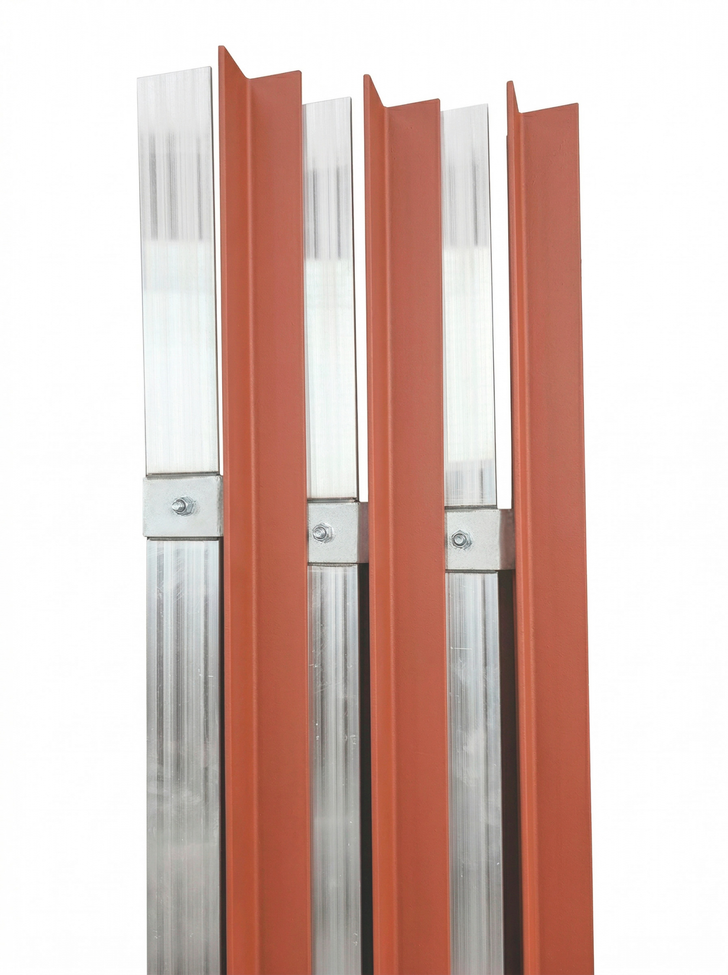 Секция К-582У1 производства "Кранэлектро" состоит из стального равнополочного уголка с размерами 50х50х5 мм с подпиточной алюминевой шиной 40х5 мм, длинна 5950 мм, с торца приварены две пластины для соединения секции между собой.