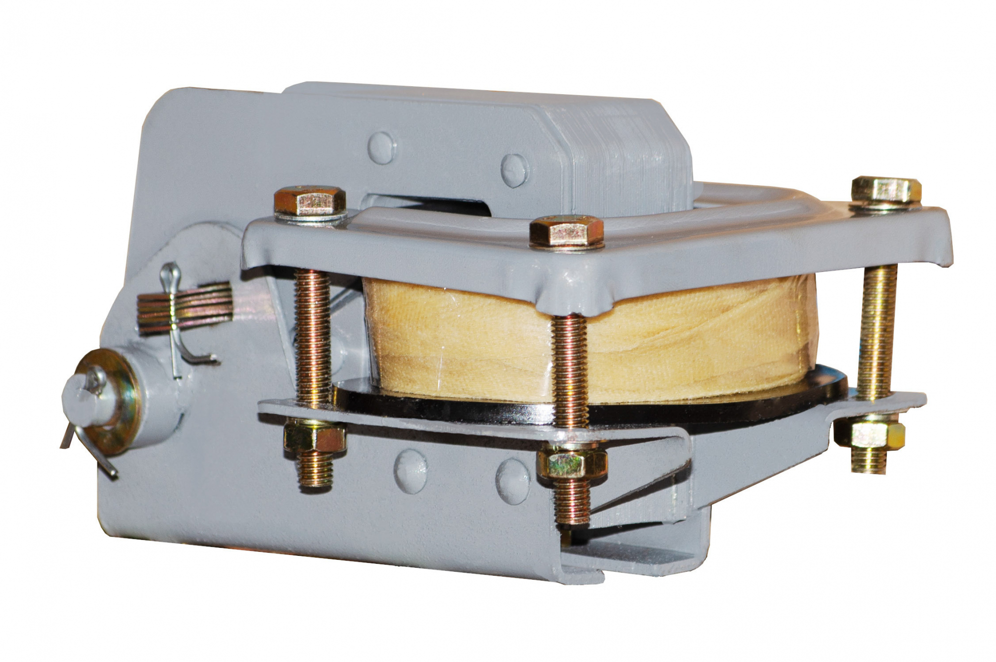 - Ярмо – жесткий стационарный стальной корпус из электротехнической стали, в который устанавливают медную катушку. Именно через ярмо электромагнит МО-100Б крепится к электромагнитному тормозу колодочного типа.